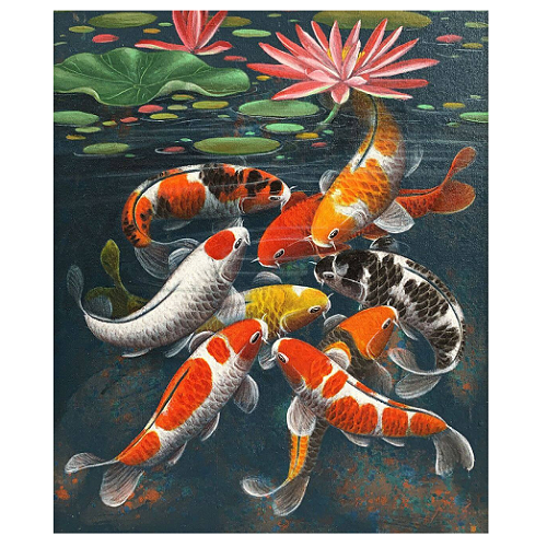 - 동양적인 아름다움: 연못 속 연잎과 잉어의 조화로운 색감은 동양화 특유의 차분하면서도 고급스러운 분위기를 연출하며, 다양한 인테리어 스타일에 잘 어울립니다