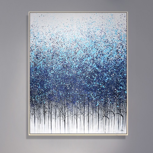 위로 올라갈수록 흩날리는 듯한 블루와 화이트의 입자들이 빛, 공기, 자유로움을 표현합니다.