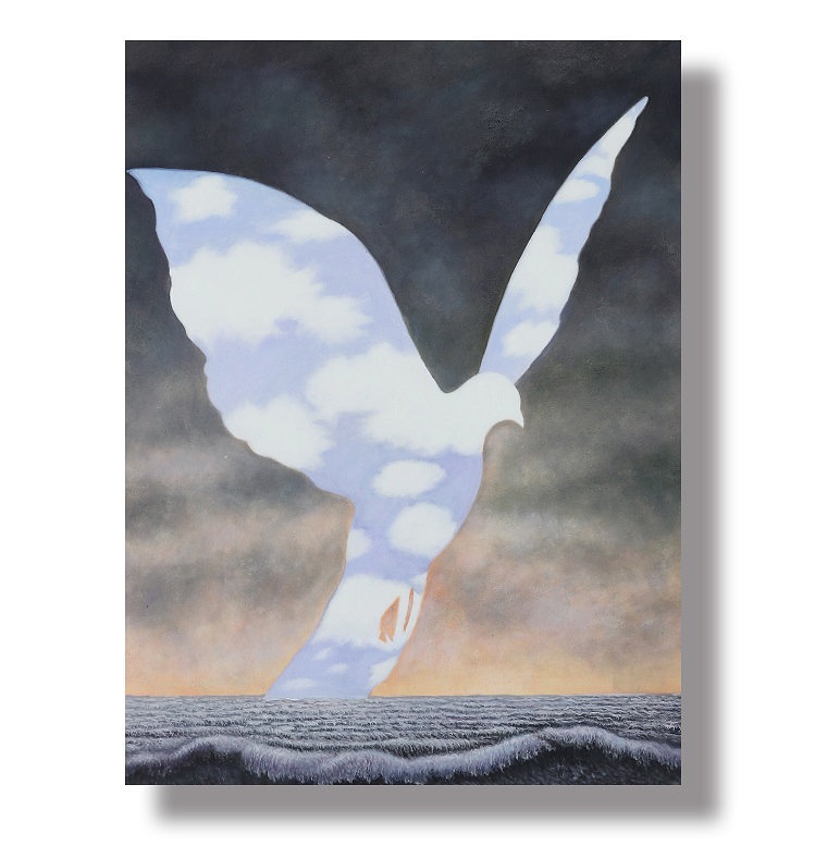 이 대비적인 구도는 현실과 이상, 불안과 자유의 경계를 상징적으로 보여줍니다.