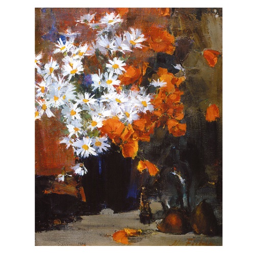 직접그린 니콜라이 페신 화사한 플라워감성 데이지 주황색꽃그림 정물화 아트인테리어