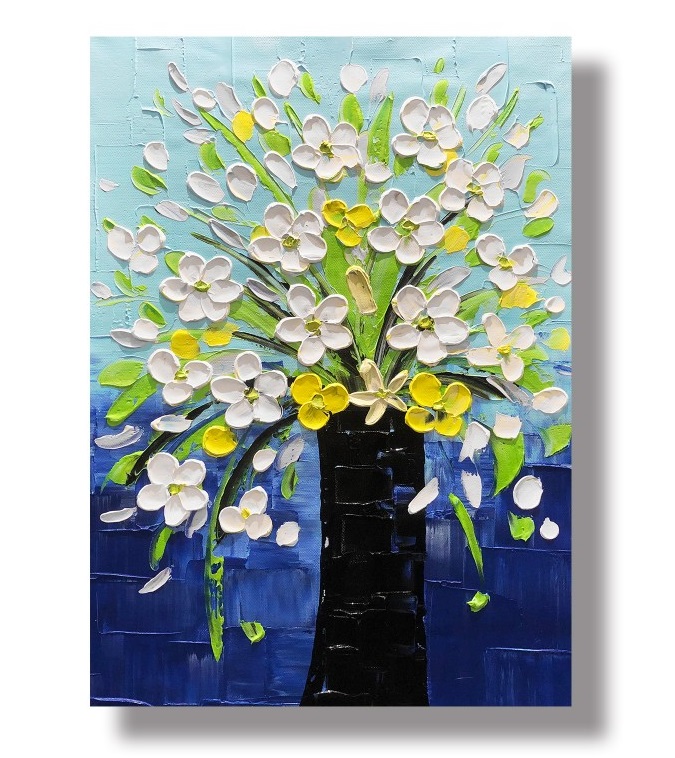 밝은 흰색과 노란색 꽃은 순수·희망·긍정 에너지를 상징하며, 공간에 맑은 기운을 불어넣습니다.