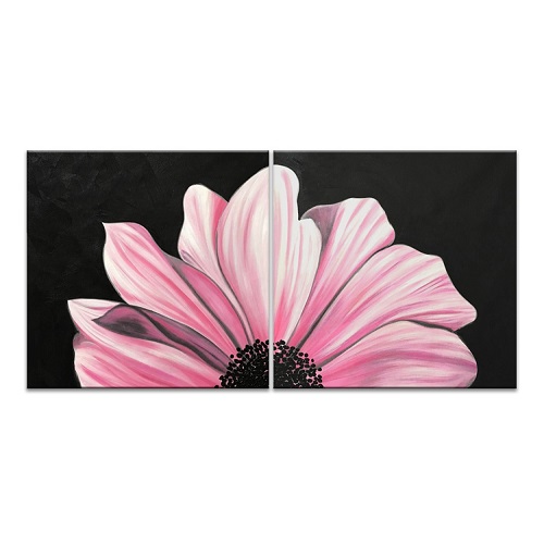 이 작품은 커다란 꽃 한 송이의 반쪽 클로즈업을 두 개의 패널로 나누어 구성한 디포르메(확대 표현) 아트입니다.