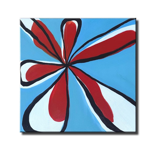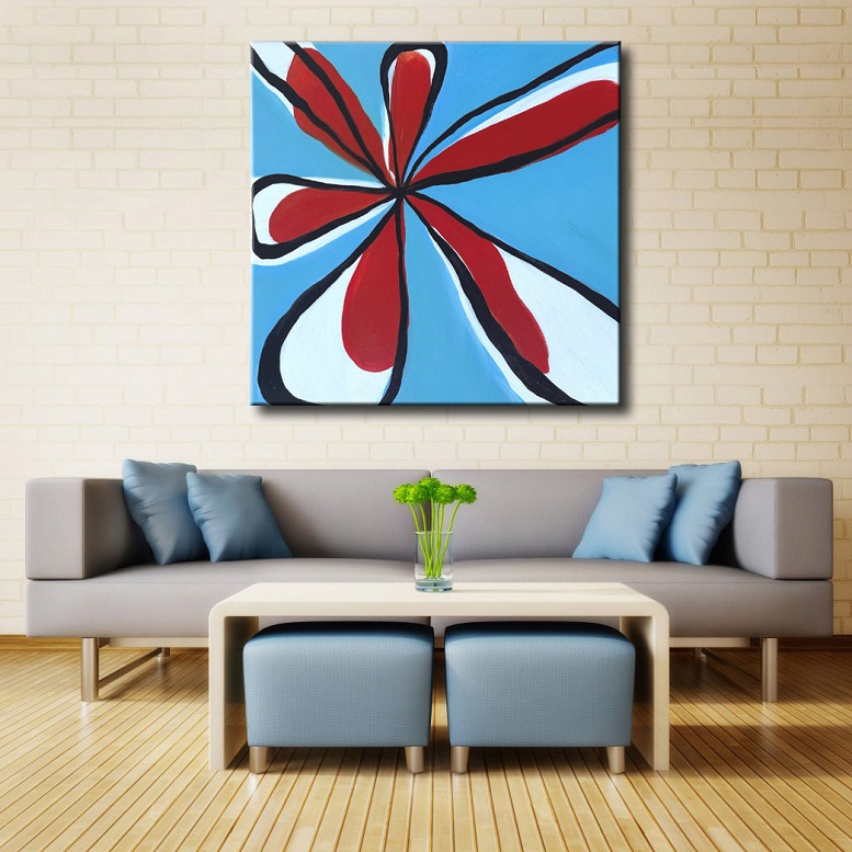 붉은 꽃잎의 생명력과 하늘빛의 청량함이 조화를 이루는 모던 플라워그림.