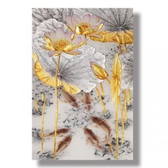 모던 골드 럭셔리 황금연꽃 잉어그림 아트프린팅 인테리어액자