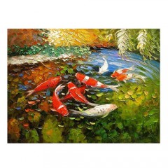 직접그린 텍스처 두꺼운질감 구어도 비단잉어그림 풍경화