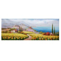 해바라기그림 풍경화 실제 그림작업 (액자프레임, 160x60cm) |