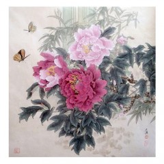 직접그린 나비 부귀화 모란꽃 목단그림 동양화 아트인테리어액자