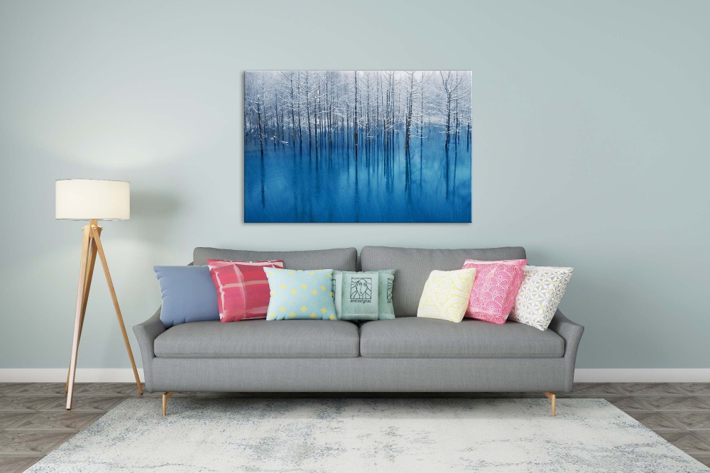 차분한 블루톤으로 공간에 고요함과 깊이를 더해 모던 인테리어에 완벽한 아트포스터.
