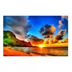 직접그린 드라마틱 선셋 레이크뷰 석양풍경화 일몰그림