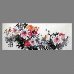 직접그린 동양화 부귀영화 모란꽃 목단그림 아트인테리어 와이드액자