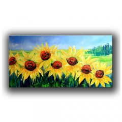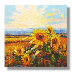 핸드페인팅 두꺼운질감 햇살가득 행운 긍정에너지 해바라기그림 풍경화 사무실 아트인테리어