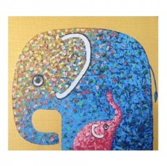 직접그린 재물 안정 상징 골드 블루 코끼리그림 풍수아트 인테리어액자