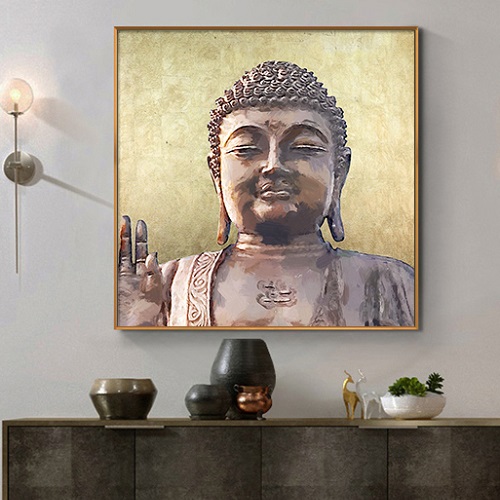 붓다의 오른손은 **두려움·불안으로부터의 해방(시무외인)**을 상징하며,