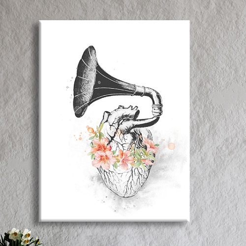 심장과 음악의 감성을 담은 감각적인 일러스트 캔버스.