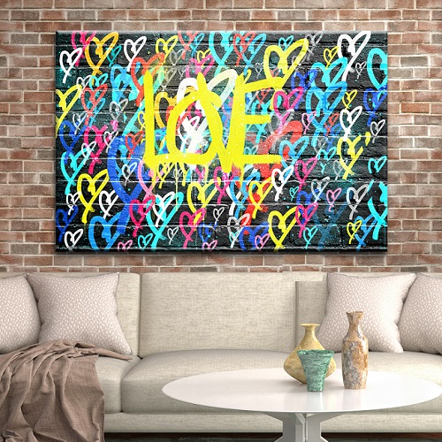 하트와 LOVE 그래피티가 돋보이는 감각적 팝아트 캔버스.