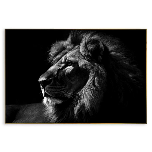 흑백 대비 속 강렬한 존재감을 담은 블랙 라이언 인테리어 액자.