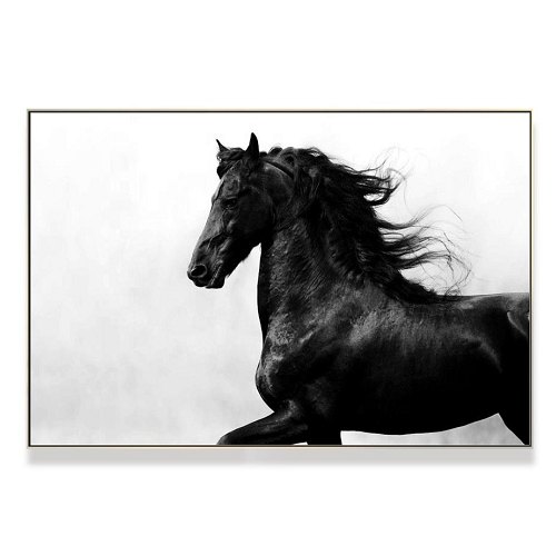 질주하는 흑마의 강렬한 에너지를 담은 인테리어 액자.