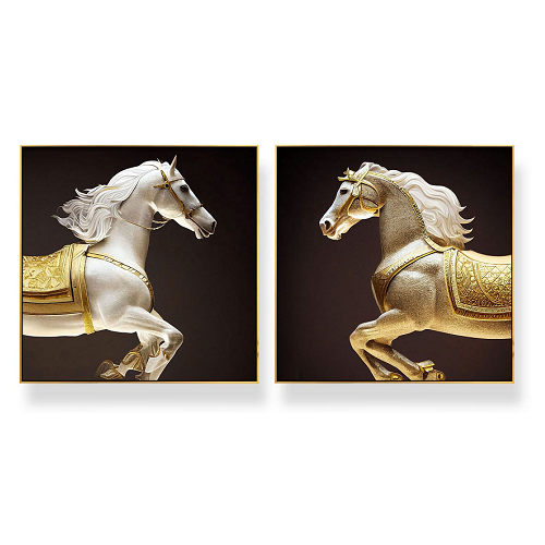고급스러운 화이트와 골드 톤으로 표현된 두 마리의 말은 기품, 속도, 성공을 상징합니다.