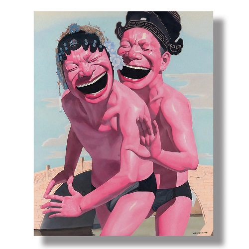 강렬한 핑크 톤 인물의 호탕한 웃음을 표현한 팝아트입니다.
