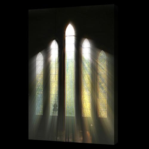 고딕 창문을 통해 쏟아지는 신성한 빛을 담은 포토아트입니다.