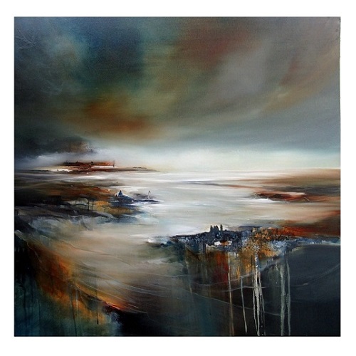 드라마틱한 색감과 여백이 돋보이는 모던 추상 풍경 아트.