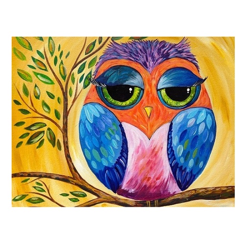 밝은 색감의 부엉이 그림으로 행운과 지혜의 기운을 담은 인테리어 아트.