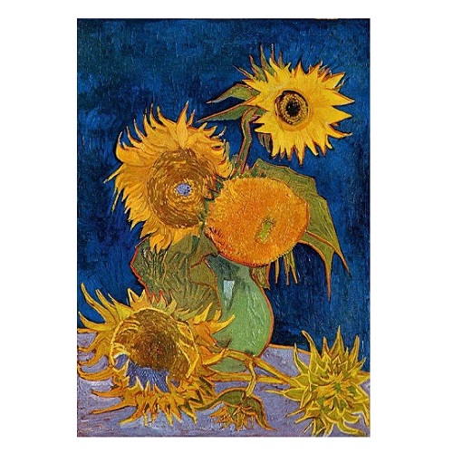 해바라기는 희망·생명력·긍정의 상징으로, 고흐에게 있어 예술과 우정, 열정을 의미했습니다.