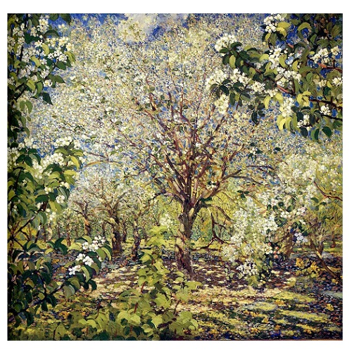 작품 해설봄의 만개한 과수원을 통해 자연의 부활과 생명력을 표현했습니다. 그림은 햇빛이 나무 사이로 스며들어 밝게 빛나는 모습을 강렬한 붓 터치와 풍부한 색채로 포착하고 있습니다.