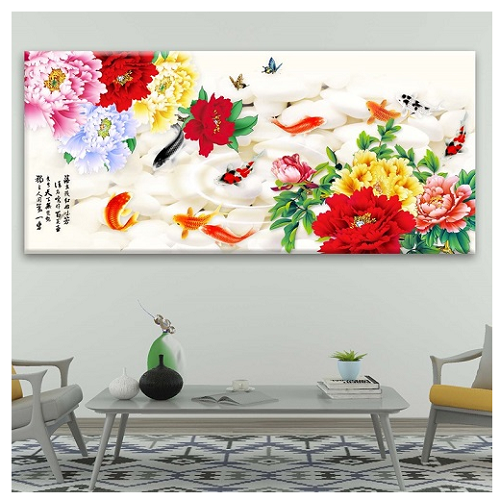 풍수 인테리어 최상 조합: 모란은 부귀, 잉어는 재물·출세 상징