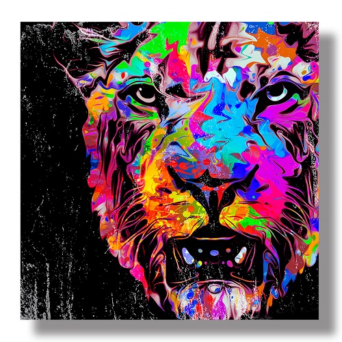 역동적이고 강렬한 색채를 사용하여 사자의 얼굴을 추상적으로 표현한
